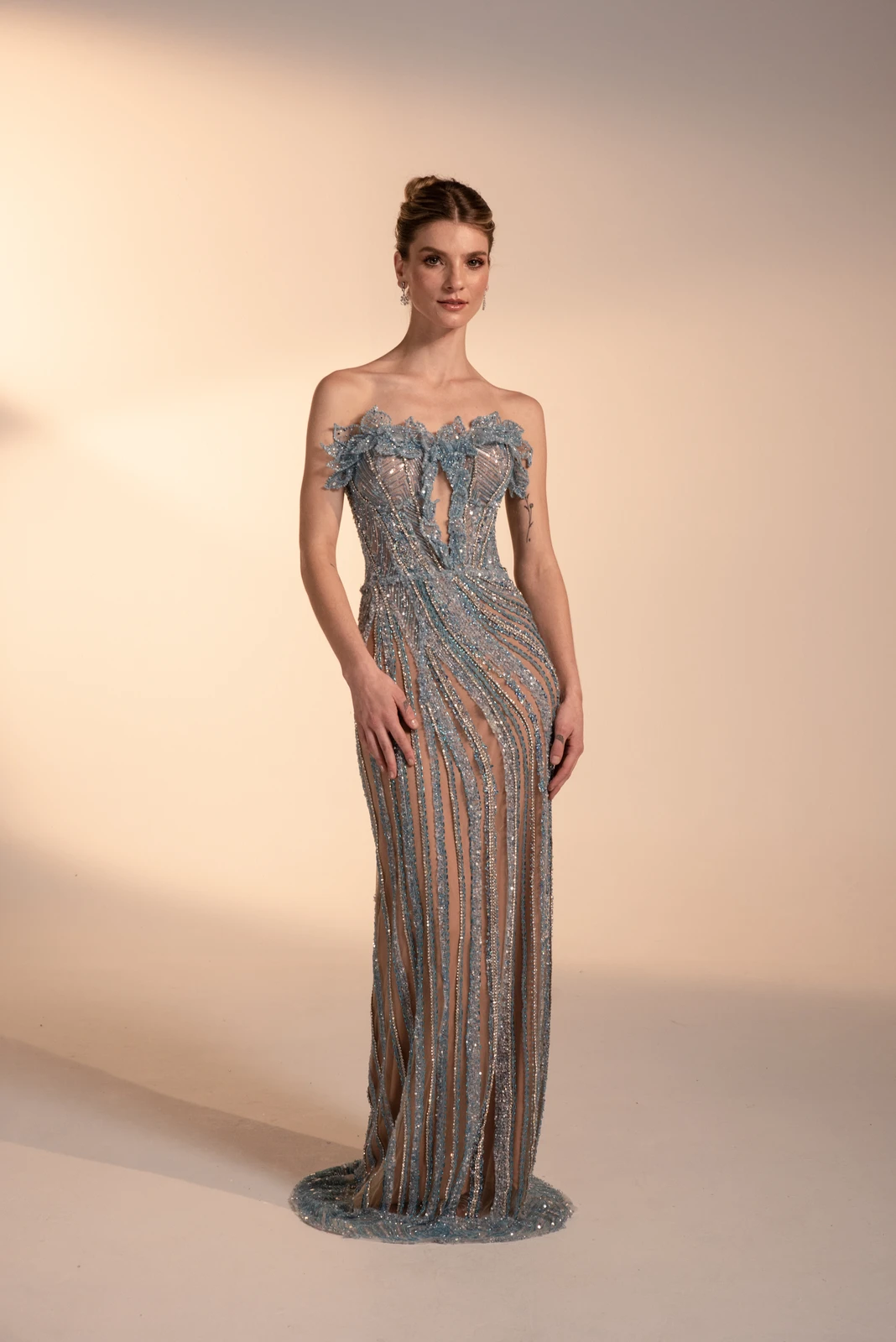 Silueta sirena con bordado con encaje y cristalería